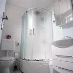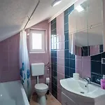 Die Badezimmer in der Villa Kuca Za Odmor -Megy- sind mit einem Bidet, einer getrennten Toilette und einer Dusche ausgestattet. Außerdem stehen ein Haartrockner, Badelaken und Hausschuhe für Ihren Komfort zur Verfügung.